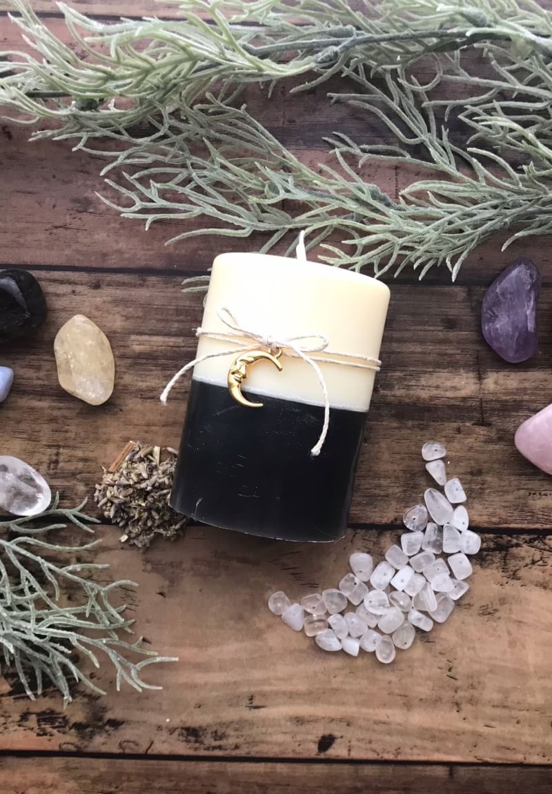 これからの新月と満月のリチュアルのときに、このキャンドルに火を灯し、約1年後、キャンドルが燃え尽きたとき、中に入っているクリスタルを取り出すことができるでしょう。